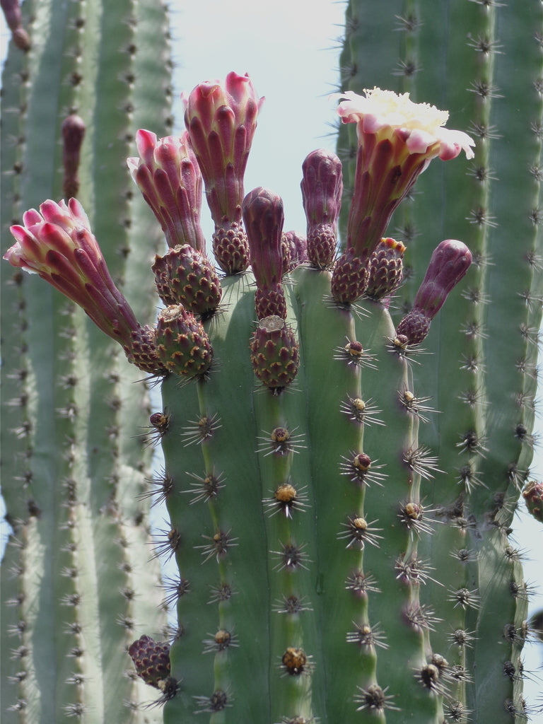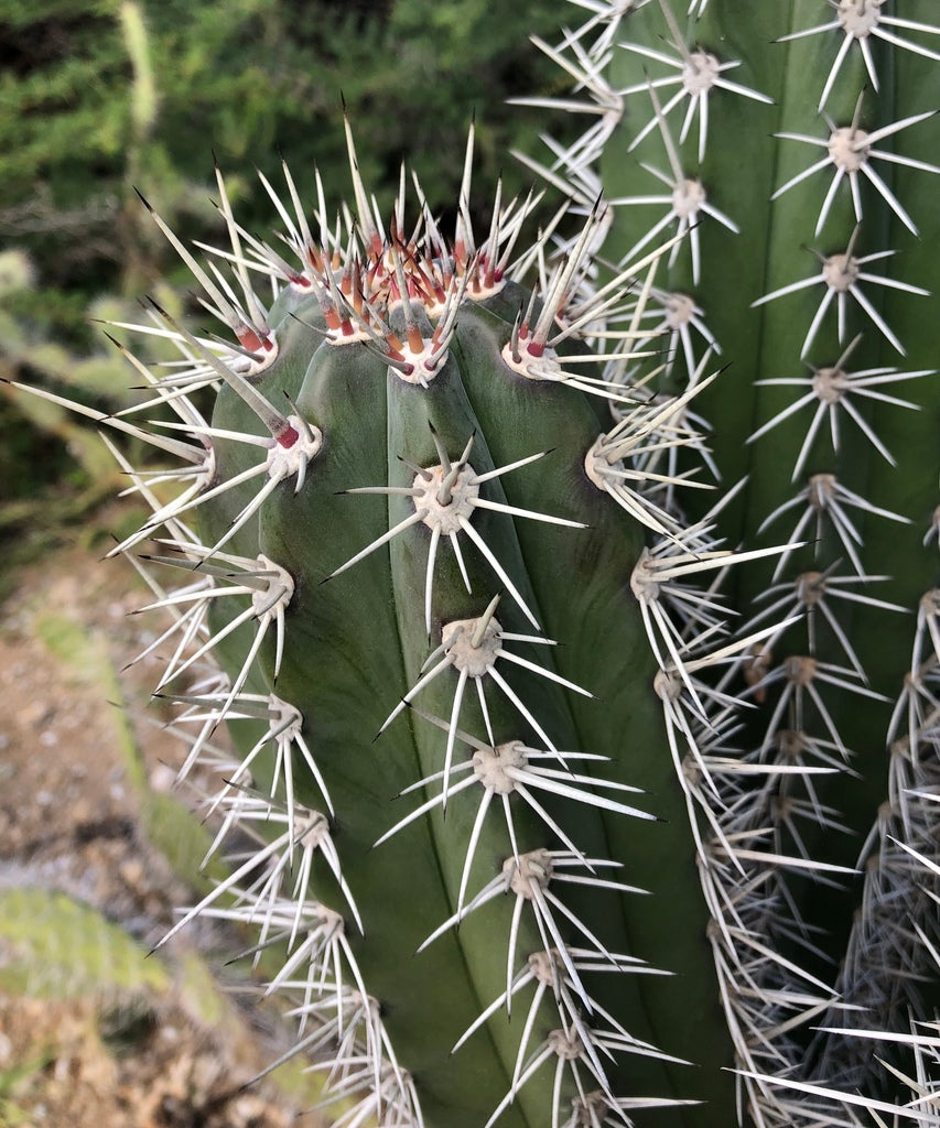 This tree-like cactus can grow up to 9 m tall, with stems up to 12 cm in diameter. Depending on the cactus, the color of the fruit varies from white, yellow, red, and purple being the hardest to find.